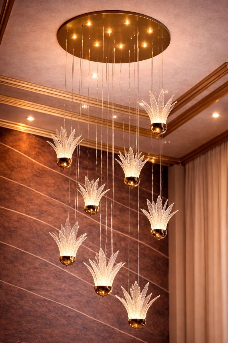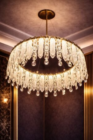 A magnificent 800mm crystal jhoomar offering three-in-one LED lighting modes for a luxurious and radiant ceiling centerpiece.